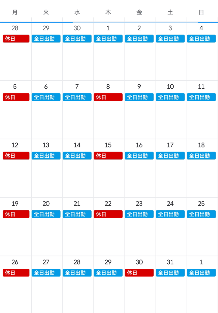 5月の出勤表になります!