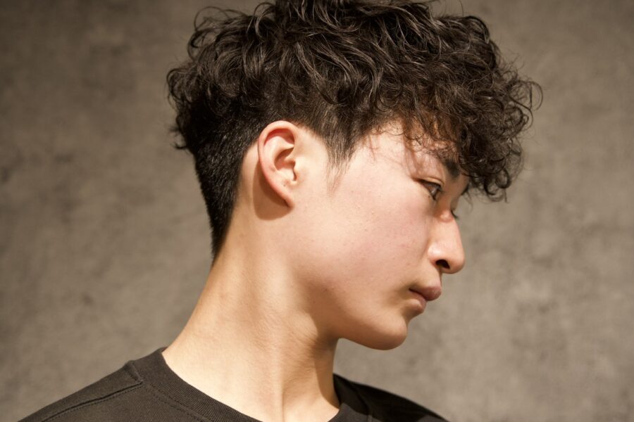 - 「黒髪」でも軽やかに見える 重くなりがちな黒髪ですが、サイドをフェード(刈り上げ)にすることで、パッと見の清潔感が激増。トップのパーマが動きを作るので、重さを感じさせません。