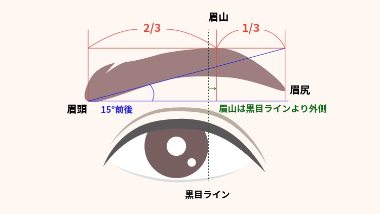 - 眉尻: 小鼻と目尻を結んだ延長線上。